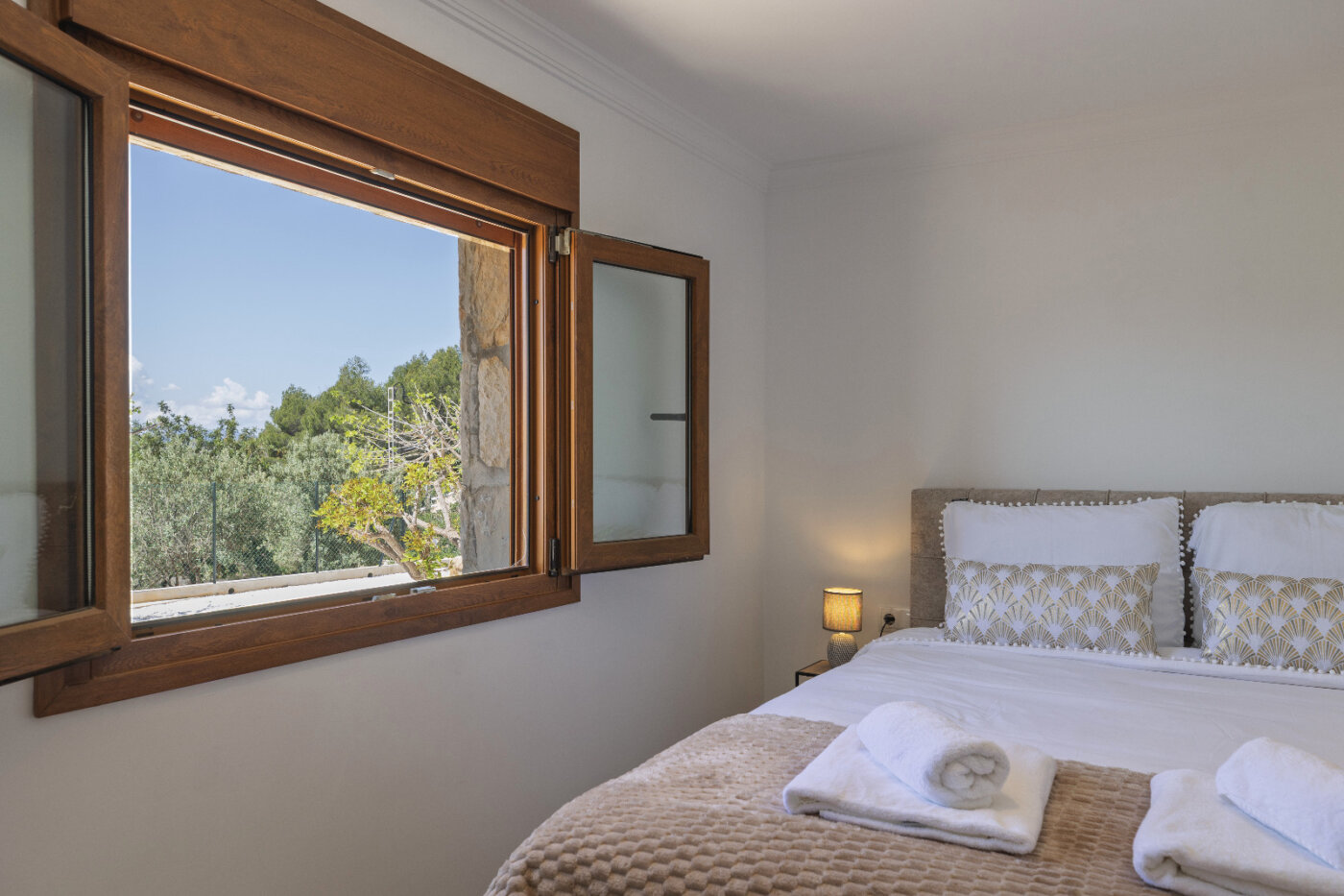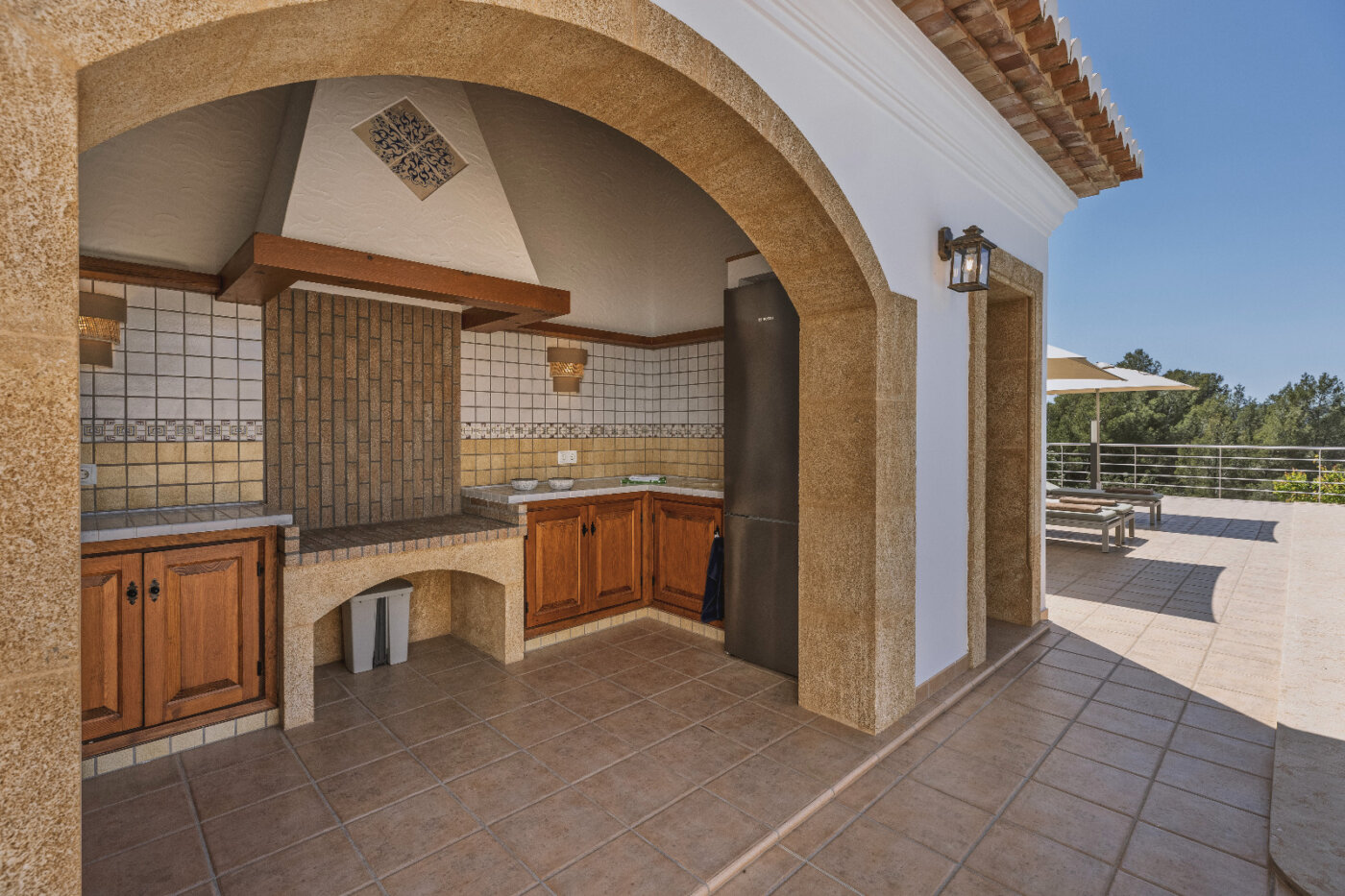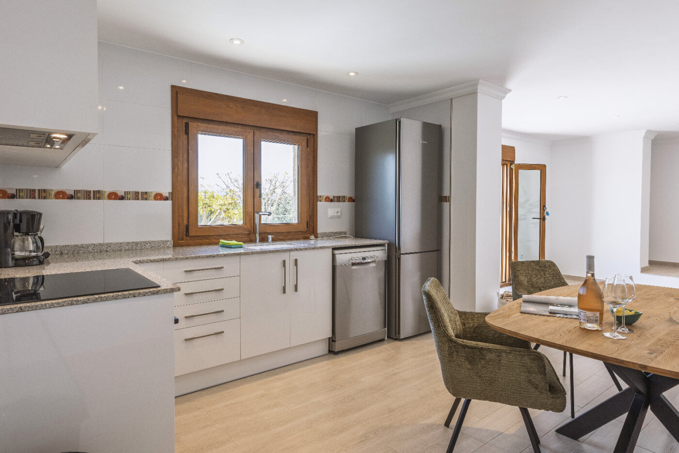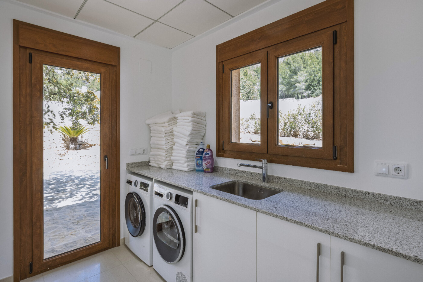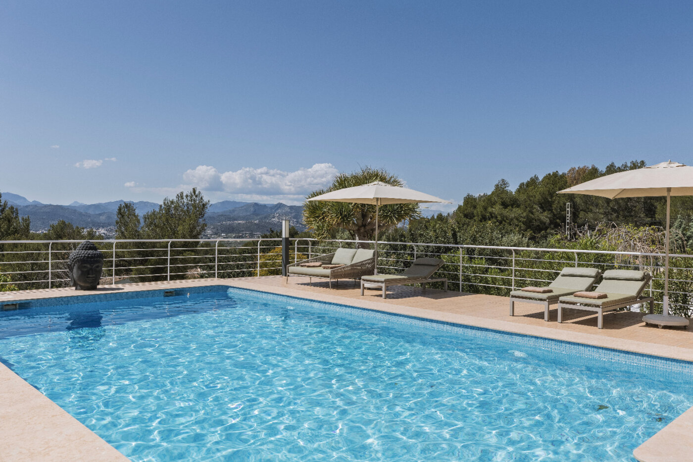 Surrounding the villa is a large garden with a private pool, outdoor kitchen, and magnificent views of the impressive Montgó mountain.