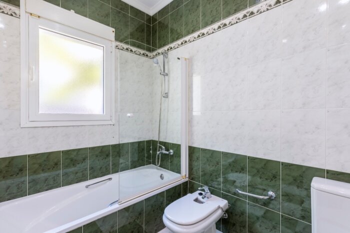 In het hele huis, zowel binnen als buiten, ligt een nieuwe tegelvloer en het is uitgerust met compleet nieuwe, moderne badkamers.