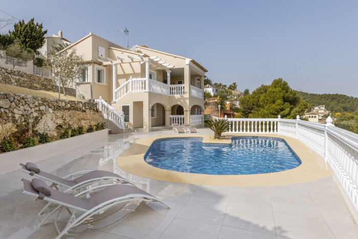 Villa Papaya is volledig verbouwd en ingericht, klaar om in te gaan wonen. Het heeft een grote open plan living/dining, met schitterend uitzicht op de omgeving tot aan de baai van Javea en een compleet nieuwe keuken gekregen. En dat niet alleen, nieuwe vloeren, volledig nieuwe badkamers, een ruime ensuite slaapkamer met badkamer beneden en een ruimer terras bij het zwembad. Zie het project hieronder en hoe is geworden!
